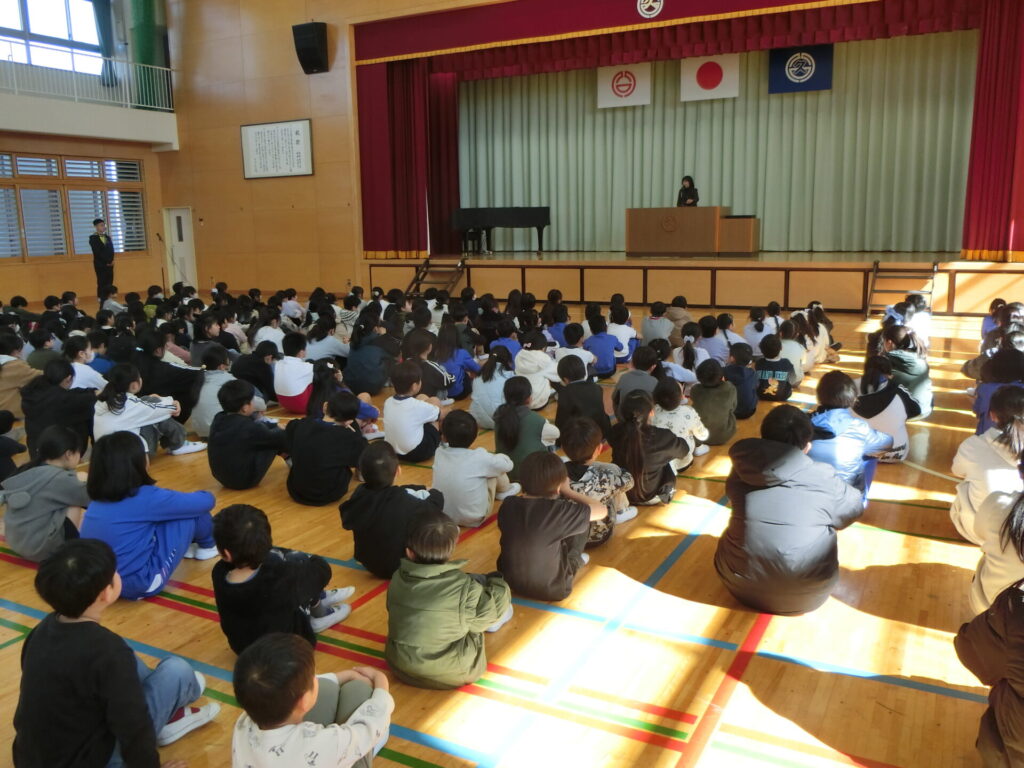 どの児童も話す先生の方を向き、良い姿勢で聞いていました。