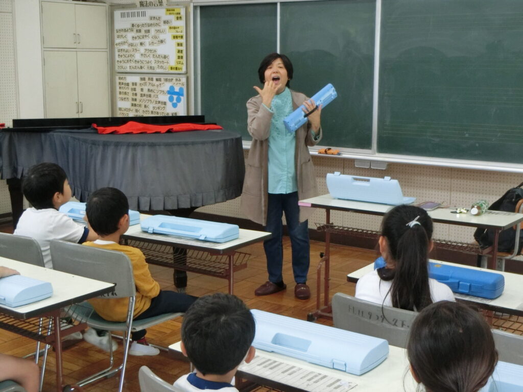 1年生 音楽の授業 2025年10月16日 最終更新日時 : 2025年10月16日 kumagaya_edit 10月15日(水)に、鍵盤ハーモニカの講習会を行いました。 谷田楽器の杉坂先生にお越しいただき、鍵盤ハーモニカの吹き方や授業での約束を学びました。授業を終えて子供たちは「楽しかった。もっと吹きたい!」と口々に話していました。