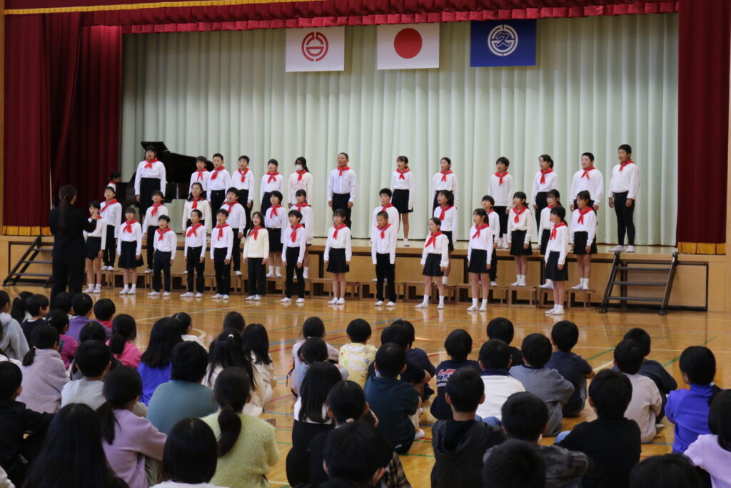 12日(水)には壮行会を行い、全校児童の前でも歌を披露しました。